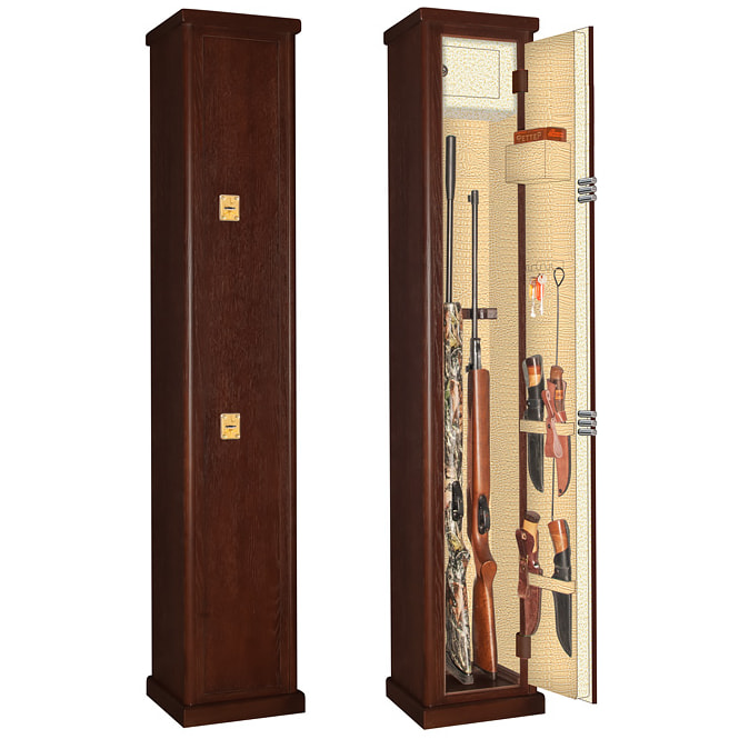 ArmWood 51 Lux — оружейный сейф с респектабельной отделкой натуральным деревом. Вмещает 3 ружья длиной до 147 cм, полностью соответствует требованиям МВД к условиям хранения оружия. Подходит для обустройства элитных домашних интерьеров в классическом стиле. Цвет и оттенок отделки можно выбрать по каталогу, либо изготовить по образцам заказчика.