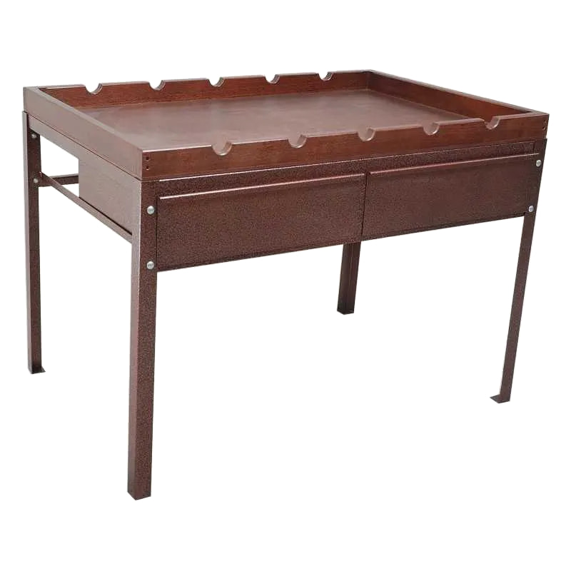 - Размеры столешницы 1200 × 800 мм — достаточно для разборки длинноствольного оружия в сборе и размещения инструмента рядом.