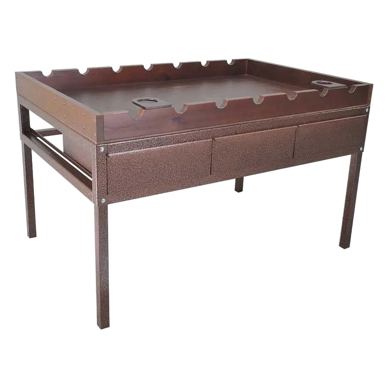 - Деревянная отбортовка по периметру с пазами для фиксации оружия во время работы — исключает соскальзывание.