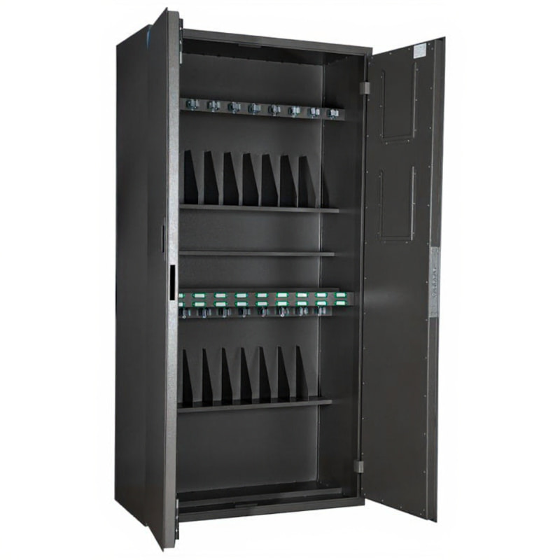 ОШ-20 "Сайга" — двустворчатый армейский шкаф на 20 карабинов типа "Сайга" и боеприпасы к ним. Сертифицирован на устойчивость ко взлому в соответствии с сейфовым стандартом ГОСТ Р 55148-2012. Отвечает всем требованиям МВД РФ.