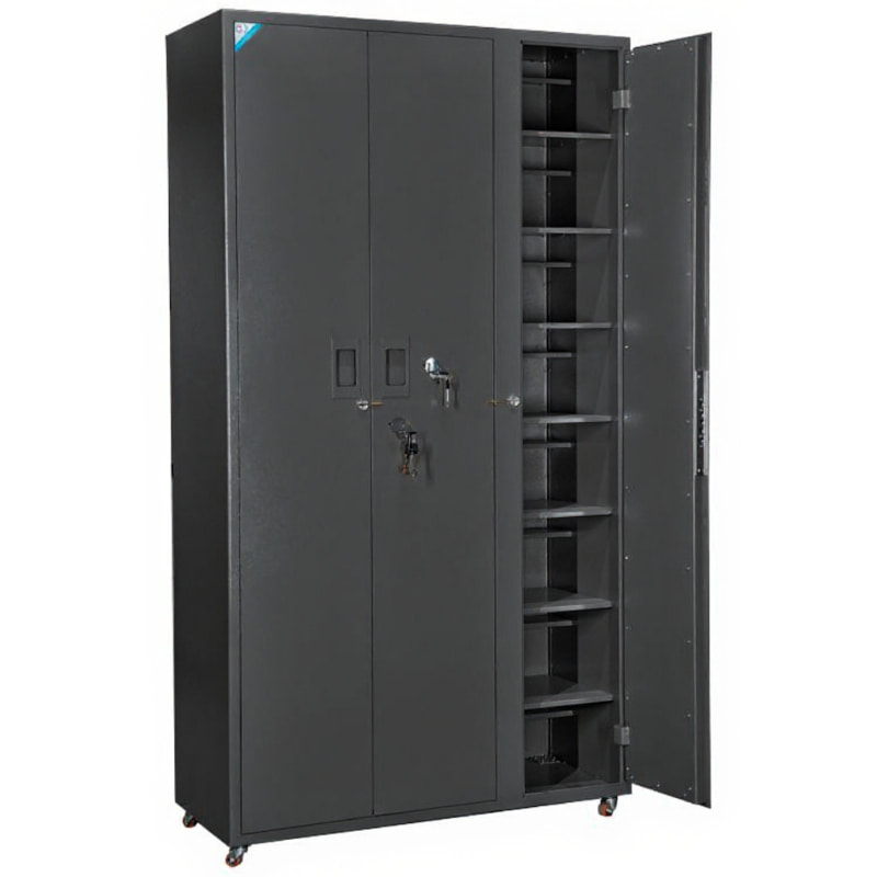 Трехстворчатый шкаф для оружейной комнаты ОШ-ШОК-3 предназначен для надлежащего хранения до 52 единиц оружия: 16 автоматов и 36 пистолетов. Отвечает всем требованиям МВД РФ к условиям безопасного хранения оружия, предназначен для юридических лиц. Взломостойкие качества подтверждены сертификатом соответствия сейфовым стандартам ГОСТ Р 55148-2012.